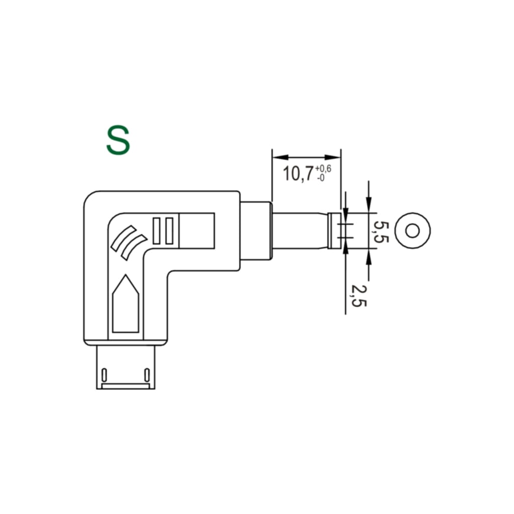 DODATKOWY WTYK KĄTOWY 14V, 5-6A wym. 5.5x2.5x10.7mm