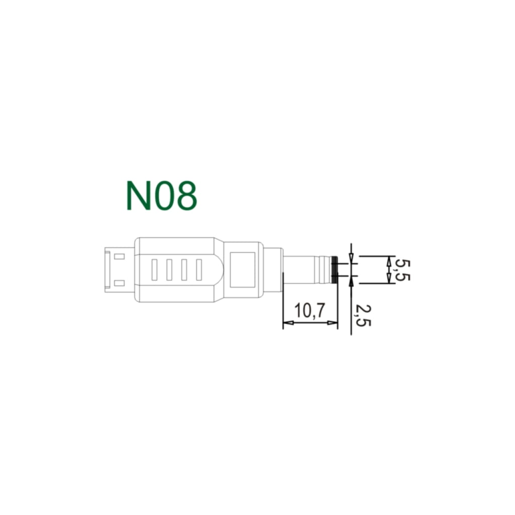 Producent: ART;Symbol producenta: P-N08;Rodzaj produktu: Wtyk prosty;Przeznaczenie: Zasilanie notebooków/ netbooków;Napięcie na wyjściu: 12V;Prąd wyjściowy: 4A;Wymiary (WxGxSZ): 5.5 x 2.5 x 10.7 mm;Inne cechy: Opcja do zasilacza AZ-70W-X;Gwarancja: 24 miesiące;
