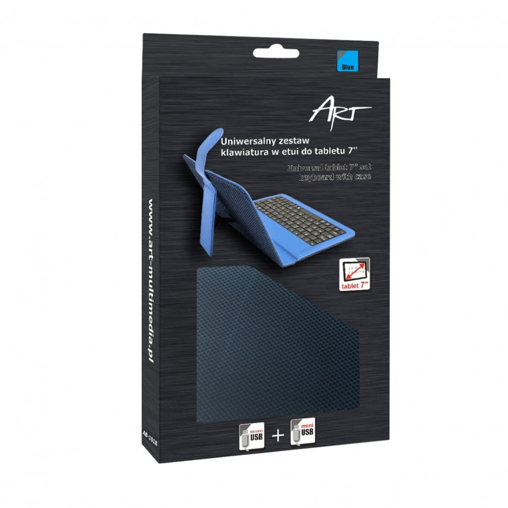 Producent: ART;Symbol producenta: AB-101B;Rodzaj produktu: Etui + klawiatura do tabletu;Przeznaczenie: Uniwersalne;Przykładowe modele: Pentagram 7", GoClever 7", Lark 7", Manta 7";Materiał wykonania : Tworzywo skóropodobne;Wielkość i rodzaj ekranu: 7 cali;Inne cechy: Uniwersalne na różne tablety 7". Regulowany w zakresie 108-130mm boczny uchwyt dzięki czemu dopasujemy etui do każdego modelu tabletu. ;Gwarancja: 24 miesiące;Znak bezpieczeństwa/zgodności: CE;Dopuszczenie do obrotu w RP: Tak;Kraj pochodzenia: Chiny;