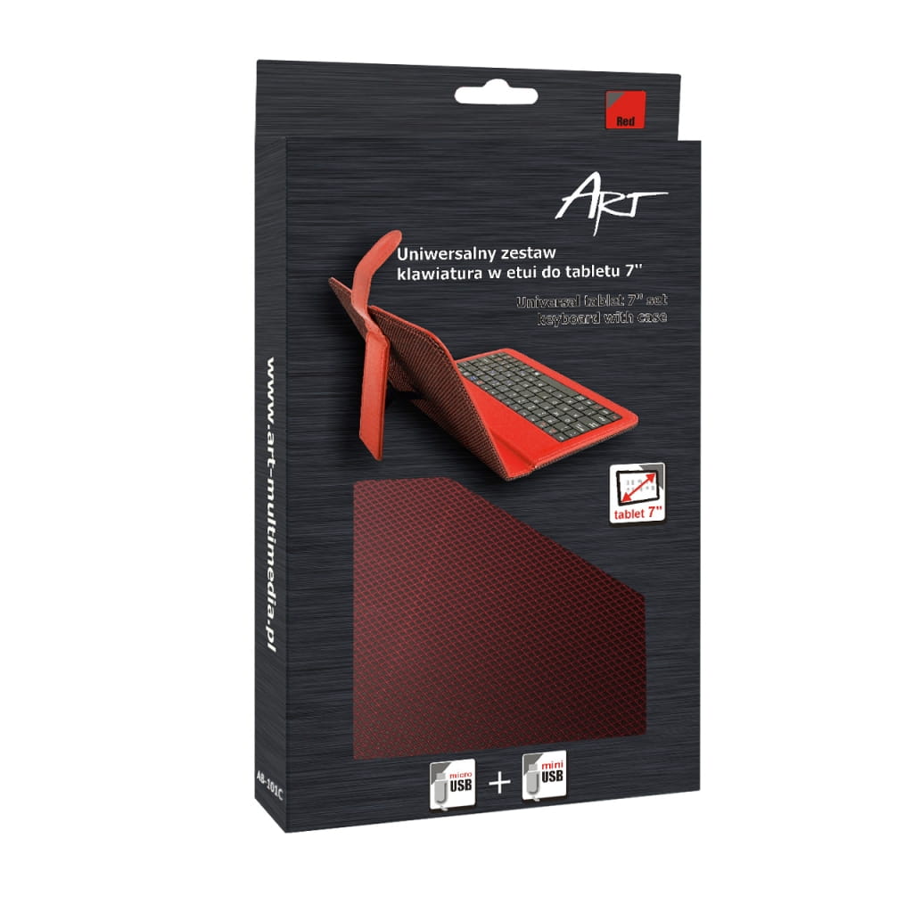 Producent: ART;Symbol producenta: AB-101C;Rodzaj produktu: Etui + klawiatura do tabletu;Przeznaczenie: Uniwersalne;Przykładowe modele: Pentagram 7", GoClever 7", Lark 7", Manta 7";Materiał wykonania : Tworzywo skóropodobne;Wielkość i rodzaj ekranu: 7 cali;Inne cechy: Uniwersalne na różne tablety 7". Regulowany w zakresie 108-130mm boczny uchwyt dzięki czemu dopasujemy etui do każdego modelu tabletu. ;Gwarancja: 24 miesiące;Znak bezpieczeństwa/zgodności: CE;Dopuszczenie do obrotu w RP: Tak;Kraj pochodzenia: Chiny;