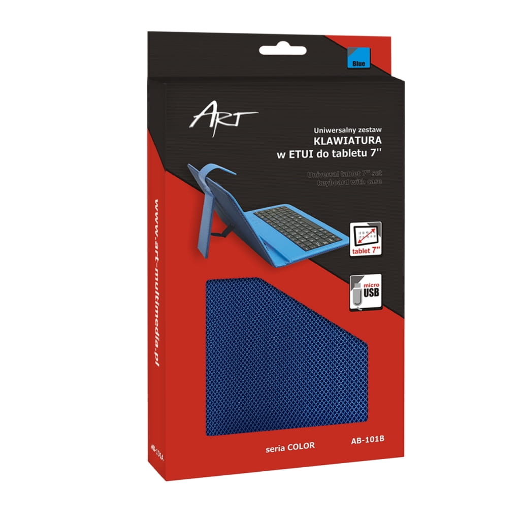 Producent: ART;Symbol producenta: AB-101B;Rodzaj produktu: Etui + klawiatura do tabletu ;Przeznaczenie: Uniwersalne ;Przykładowe modele: Pentagram 7", GoClever 7", Lark 7", Manta 7" ;Materiał wykonania : Tworzywo skóropodobne ;Wielkość i rodzaj ekranu: 7 cali;Inne cechy: Uniwersalne na różne tablety 7". Regulowany w zakresie 108-130mm boczny uchwyt dzięki czemu dopasujemy etui do każdego modelu tabletu. ;Gwarancja: 24 miesiące;Znak bezpieczeństwa/zgodności: CE;Dopuszczenie do obrotu w RP: Tak;Kraj pochodzenia: Chiny;