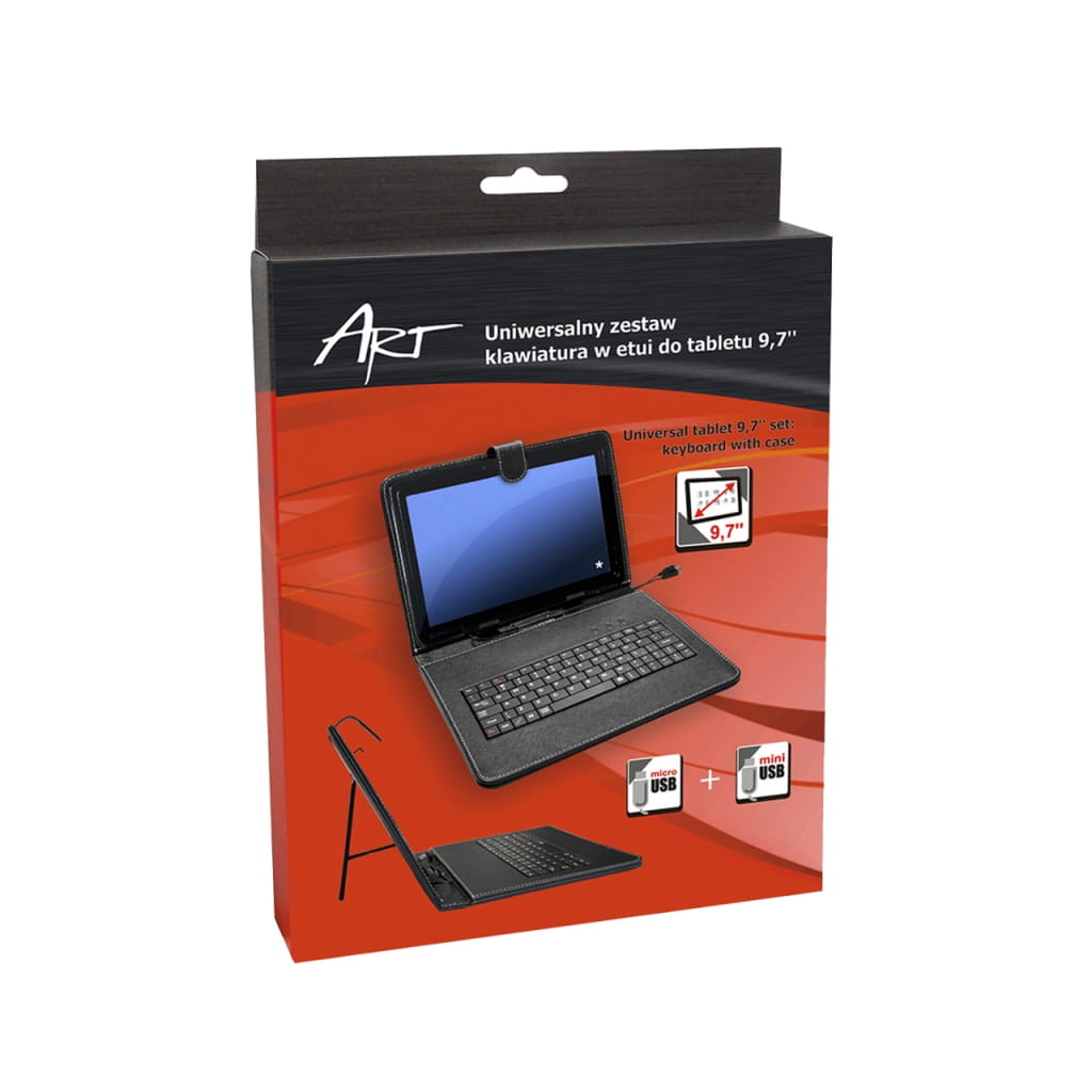 Producent: ART;Symbol producenta: AB-99;Rodzaj produktu: Etui + klawiatura do tabletu;Przeznaczenie: Uniwersalne;Przykładowe modele: GoClever 9.7", Lark 9.7";Materiał wykonania : Tworzywo skóropodobne;Wielkość i rodzaj ekranu: 9.7 cala;Inne cechy: Uniwersalne na różne tablety 9.7". Regulowany w zakresie 16,5-19cm boczny uchwyt dzięki czemu dopasujemy etui do każdego modelu tabletu;Gwarancja: 24 miesiące;Znak bezpieczeństwa/zgodności: CE;Dopuszczenie do obrotu w RP: Tak;Kraj pochodzenia: Chiny;