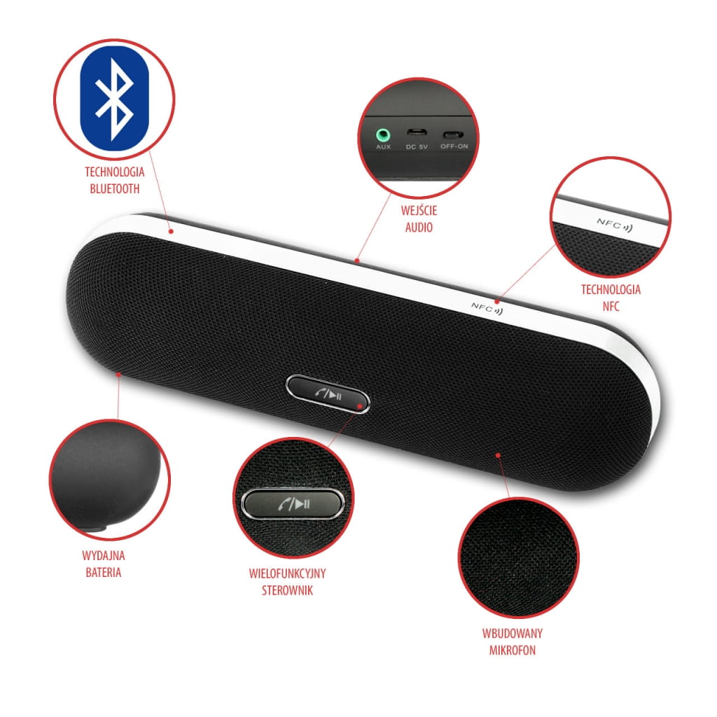 GŁOŚNIK MOBILNY Z MIKROFONEM BLUETOOTH 10W (ver2.1+EDR) !!!NFC!!! ART