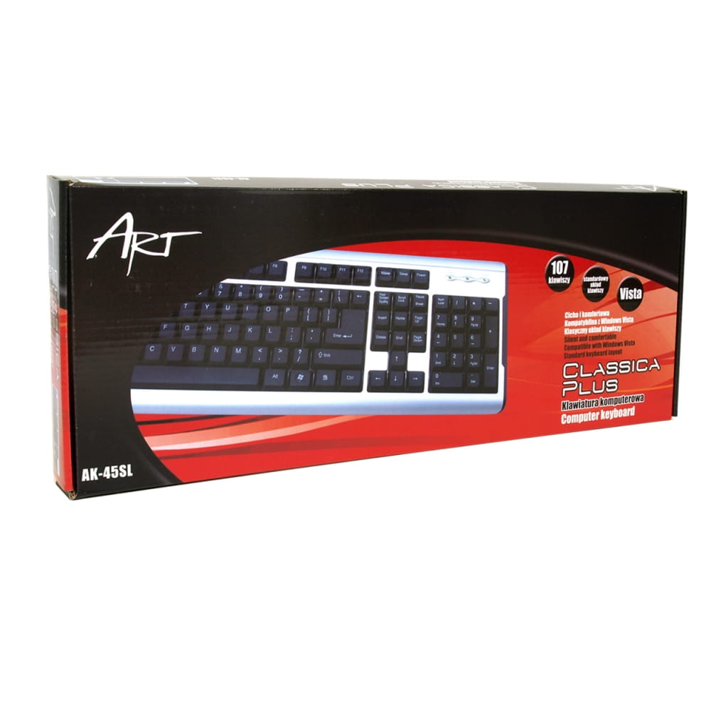 Producent: ART;Symbol producenta: AK-45SL;Rodzaj urządzenia: Klawiatura;Transmisja: Przewodowa;Port: USB / PS/2;Typ: Standardowa;Profil: Standardowa;Podkładka: Nie;Duży ENTER: Tak;Kompatybilna z: Windows 98/ME/2000/XP/Vista/7;Gwarancja: 24 miesiące;Znak bezpieczeństwa/zgodności: CE;Dopuszczenie do obrotu w RP: Tak;Kraj pochodzenia: Chiny;