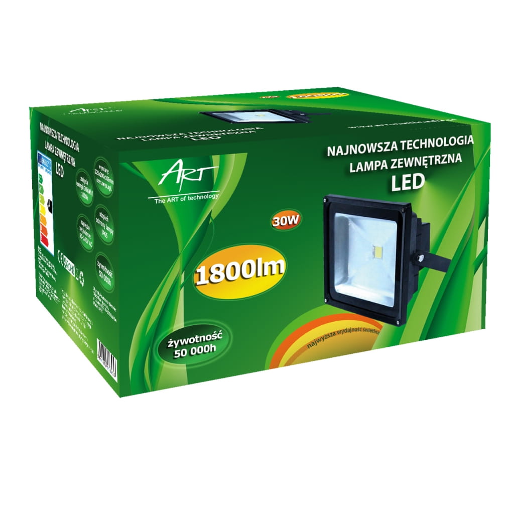 Producent: ART;Symbol producenta: 4102090 EKO;Rodzaj produktu: Lampa LED;Moc: 30W;Wodoodporność: TAK;Rodzaj LED: COB;Napięcie: AC 80-265V;Barwa światła (K): 6500;Moc strumienia świetlnego (lm): 1800;Kąt świecenia (st): 120;Szerokość lampy (mm): 225;Wysokość lampy (mm): 185;Głębokość lampy (mm): 160;Inne cechy: Stopień ochrony IP65;Wymiary opakowania (mm): 230 x 190 x 130;Gwarancja: 24 miesiące;Zużycie energii: 30kWh/1000h;Klasa energetyczna: A;Liczba cykli włącz/wyłącz: >15 000;Czas nagrzewania: <1s;Trwałość: 50 000h;CRI/Ra: >75;Czas zapłonu: <1s;Współczynnik mocy: 0,6;LLMF: 0,65;Przeznaczenie do ściemniania: Nie;Przeznacznie do oświetlenia akcentowego: Nie;Znak bezpieczeństwa/zgodności: CE;Dopuszczenie do obrotu w RP: Tak;Kraj pochodzenia: Chiny;