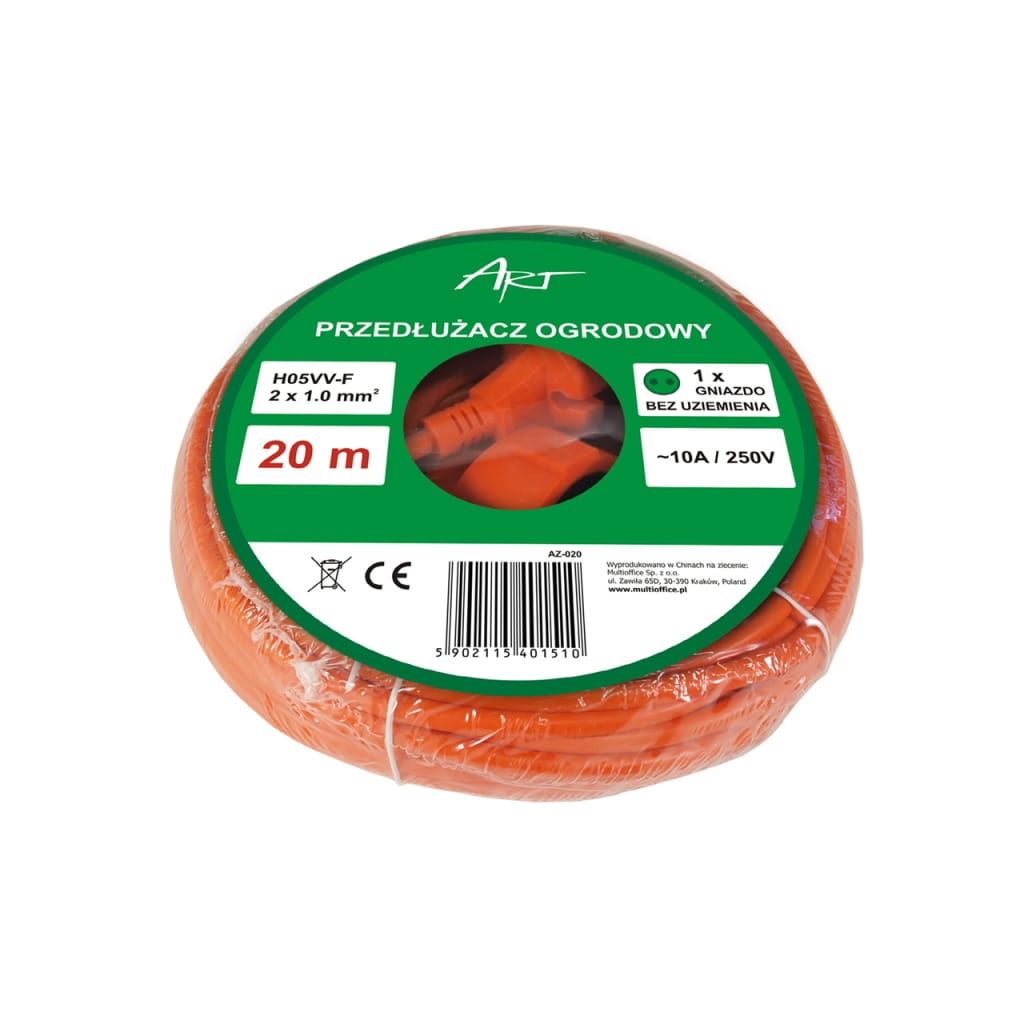 Producent: ART;Symbol producenta: AZ-O20;Rodzaj produktu: Przedłużacz ogrodowy;Długość kabla zasilającego: 20m;Inne cechy: Gniazdo z zabezpieczeniem przed dziećmi;Gwarancja: 24 miesiące;Znak bezpieczeństwa/zgodności: CE;Dopuszczenie do obrotu w RP: Tak;Kraj pochodzenia: Chiny;