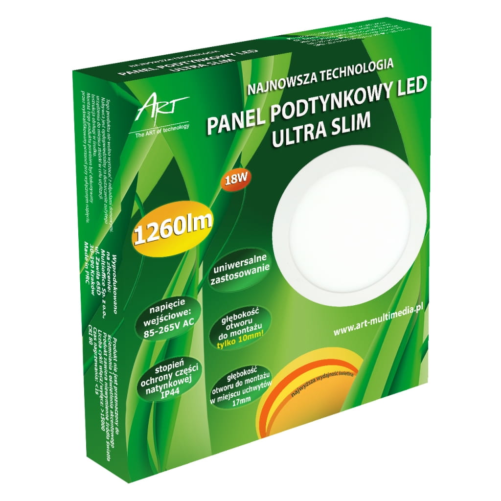 Panel LED ART, okrągły, 220mm, 18W, ultra slim 12mm, W 4000K