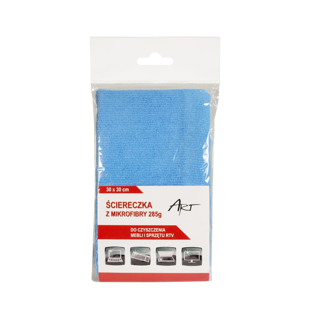 Producent: ART;Symbol producenta: AS-23;Rodzaj produktu: Ściereczka z mikrofibry;Pojemność/Zawartość: 1 szt 30X30 285g;Charakterystyka: Do czyszczenia mebli i sprzętu RTV;Zastosowanie: Doskonale sprawdza się w czyszczeniu takich powierzchni jak: ekrany monitorów, kineskopów, sprzętu komputerowego, elektronicznego, mebli, blatów kuchennych, lamp, metali i plastików.;Inne cechy: Przeznaczona do czyszczenia i polerowania bez używania detergentów.;Gwarancja: 24 miesiące;Dopuszczenie do obrotu w RP: Tak;Kraj pochodzenia: Chiny;