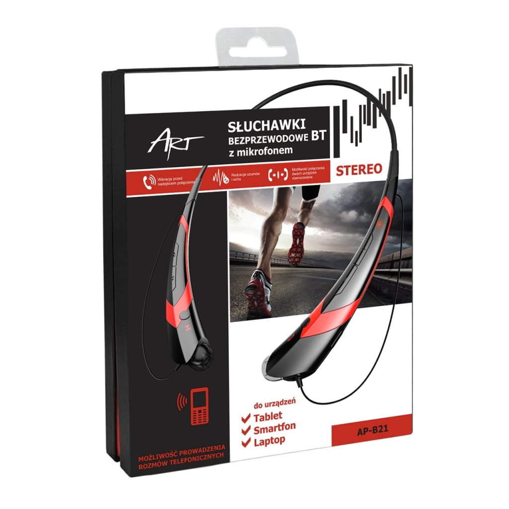 SŁUCHAWKI BT Z MIKROFONEM ART AP-B21 czarne/czerw (RING) sport