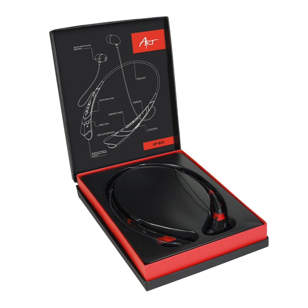 Producent: ART;Symbol producenta: AP-B21;Rodzaj produktu: Słuchawki douszne Bluetooth;Rodzaj złącza: BLUETOOTH ;Pasmo przenoszenia: 20Hz-20KHz;Impedancja: 32 ohm;Czułość: 115 dB;Inne cechy: Nowocześnie wyglądający pałąk z magnetycznym mocowaniem słuchawek;Mikrofon: Tak;Gwarancja: 24 miesiące;Znak bezpieczeństwa/zgodności: CE;Dopuszczenie do obrotu w RP: Tak;Kraj pochodzenia: Chiny;