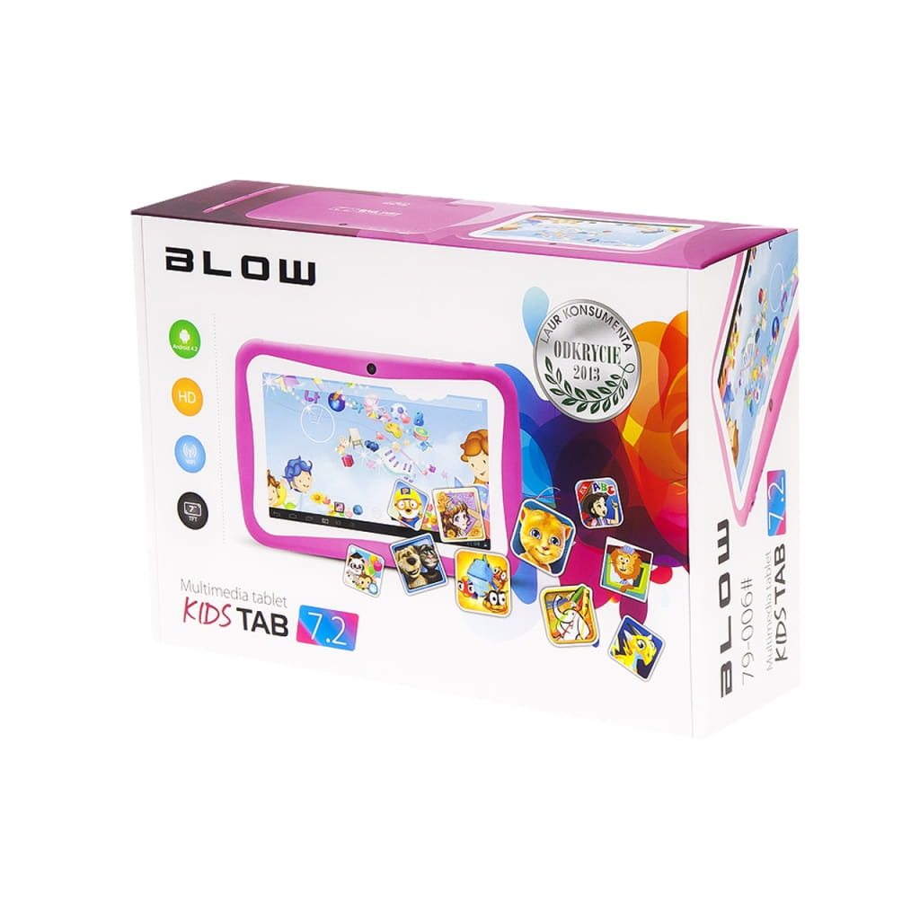 Producent: BLOW;Symbol producenta: 79-008;Procesor: - Procesor CPU: RK3026, Cortex A9 1.0 GHz - Procesor GPU: Mali-400 MP2 wsparcie OpenGL ES 2.0 / VG 1.1 standards;Rozdzielczość ekranu: 800 x 480 pikseli;System operacyjny: Android 4.2;Rozmiar ekranu: 7 cali;Pamięć wewnętrzna : 4GB;Format zdjęć: - Obsługiwane formaty obrazów: JPG, JPEG, GIF, BMP, PNG;Formaty odtwarzanych plików video: - Odtwarzacze: wideo, audio, obrazy, książki elektroniczne, przeglądarka internetowa - Obsługiwane formaty video: AVI(H.264, DIVX, DIVX, XVID), rm, rmvb, MKV(H.264, DIVX, DIVX, XVID), WMV, MOV, MP4(H.264, MPEG, DIVX, XVID), MPEG, MPG, FLV(H.263,H.264) - Obsługiwane formaty audio: MP3,WMA,MP2,OGG,AAC,M4A,MA4,FLAC,APE,;Zasilanie: - Zasilanie: DC 5V 2,0A (gniazdo 2.5DC lub miniUSB), akumulator 3,7V 3000 mAh;Wersja językowa menu: obsługiwane 54 języki, domyślnie polski;Inne cechy: - Audio: wbudowany głośnik 1W/8Ohm, wyjście typu Jack 3,5 stereo - Transmisja danych: port miniUSB pracujący w trybie Client i Host - Przyciski: Zasilanie, głośność (+/-);Znak bezpieczeństwa/zgodności: CE;Dopuszczenie do obrotu w RP: Tak;Kraj pochodzenia: Chiny;