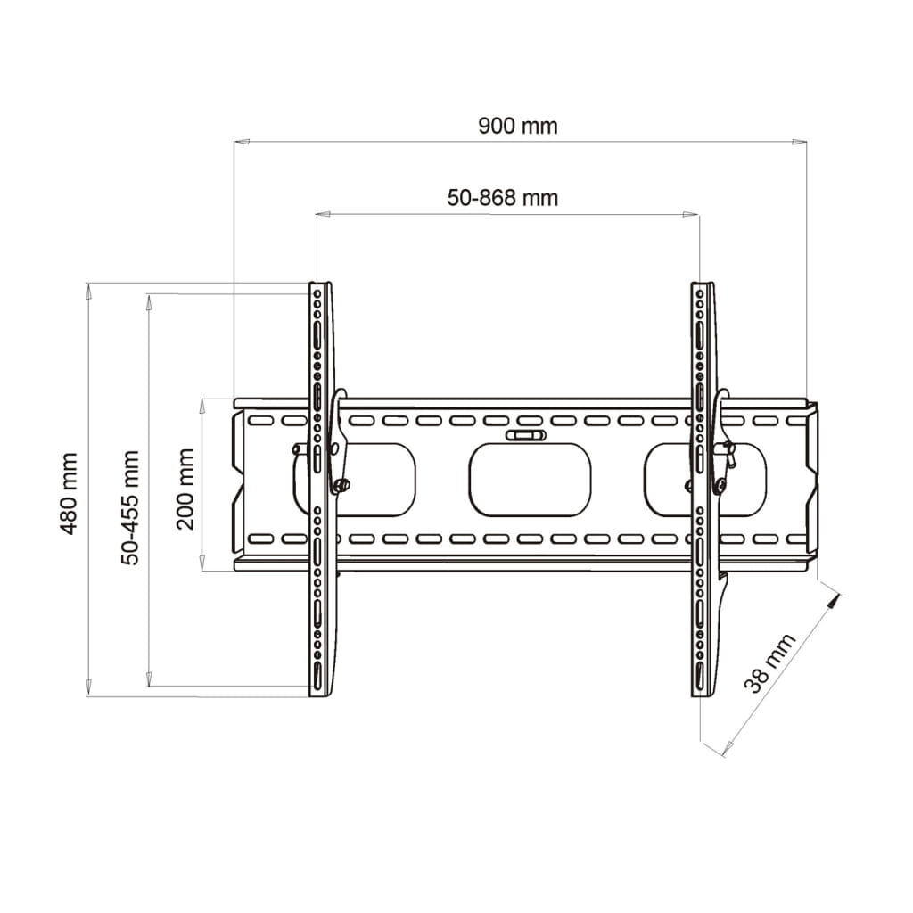 Producent: ART;Symbol producenta: AR-11;Rodzaj produktu: Uchwyt ścienny do telewizora;Zastosowanie: Montaż telewizora LCD/plazma/LED;Standard VESA: Tak;Rozmiar telewizora: 42-70 cali;Maksymalna waga telewizora: 75 kg;Maksymalny rozstaw otworów pod uchwyt: 800x400, 700x400, 600x400, 400x400, 400x300, 300x300, 300x200, 200x200;Regulacja w pionie (nachył): do -12 stopni;Regulacja w poziomie (obrót): Nie;Mocowanie do sufitu: Nie;Mocowanie do ściany: Tak;Odległość od ściany: 38 mm;Uchwyt narożny: Nie;Blokada zabezpieczająca TV przed zsunięciem: Tak;Wymiary uchwytu: (szer x wys x głęb) 900 x 480 x 38 mm ;Materiał wykonania: Metal;Sposób lakierowania: Proszkowo;Kolor: Czarny;Zestaw śrub do montażu: Tak;Inne cechy: Łatwy w instalacji;Gwarancja: 24 miesiące;Dopuszczenie do obrotu w RP: Tak;Kraj pochodzenia: Chiny;